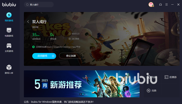點(diǎn)擊按鈕添加到我的游戲之中,然后選擇區(qū)服就能夠快速開啟加速。在此界面中我們能夠看到優(yōu)化之后的游戲延遲情況,雙人成行國(guó)際服可以將延遲降低到35,并且還能夠同時(shí)為多個(gè)對(duì)應(yīng)的PC游戲平臺(tái)提供網(wǎng)絡(luò)修復(fù)。這樣不管是啟動(dòng)游戲、存檔同步還是邀請(qǐng)好友加入房間都不會(huì)有卡頓,極低的丟包率更是能夠杜絕閃退等諸多的網(wǎng)絡(luò)狀況。玩家可以選擇在biubiu中啟動(dòng)游戲,這樣會(huì)更加方便,也是可以讓加速效果能夠更好的在游戲中體現(xiàn)生效。當(dāng)然了,在游玩結(jié)束之后不要忘記回到biubiu中結(jié)束加速進(jìn)程,停止之后再加速其他游戲作品是沒有問題的。