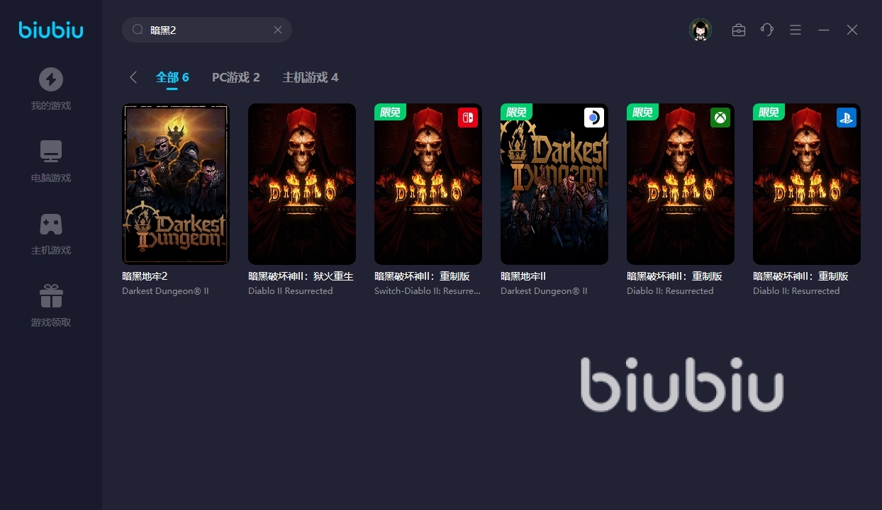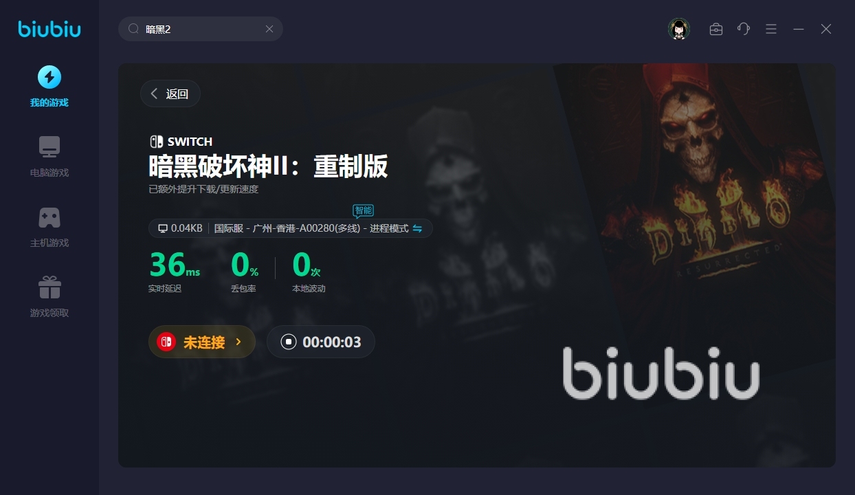 在市面上大家所能挑選的工具種類還是比較多的,使用起來(lái)的便利程度也很高,而小編覺(jué)得也就biubiu表現(xiàn)不錯(cuò),大家去點(diǎn)擊上面的鏈接來(lái)下載即可,然后在首頁(yè)之中輸入“暗黑2”來(lái)進(jìn)行定位,具體如下圖所示,這個(gè)時(shí)候就可以把對(duì)應(yīng)的作品添加到庫(kù)中來(lái)開(kāi)啟加速了。