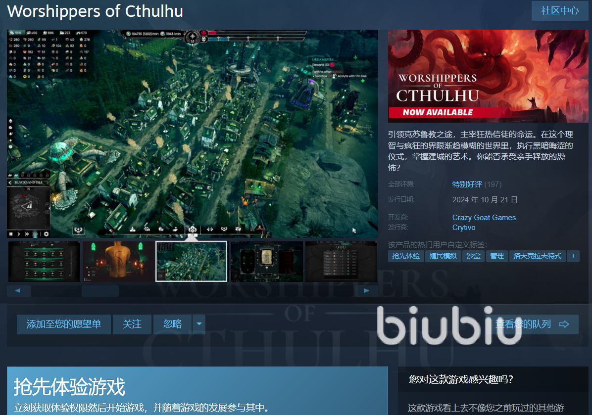 克蘇魯崇拜者在Steam平臺(tái)上的名稱為“Worshippers of Cthulhu”。大家可以通過(guò)在Steam商店搜索該名稱,找到并下載游戲。目前,游戲已在Steam平臺(tái)上推出了搶先體驗(yàn)版,供大家提前試玩。