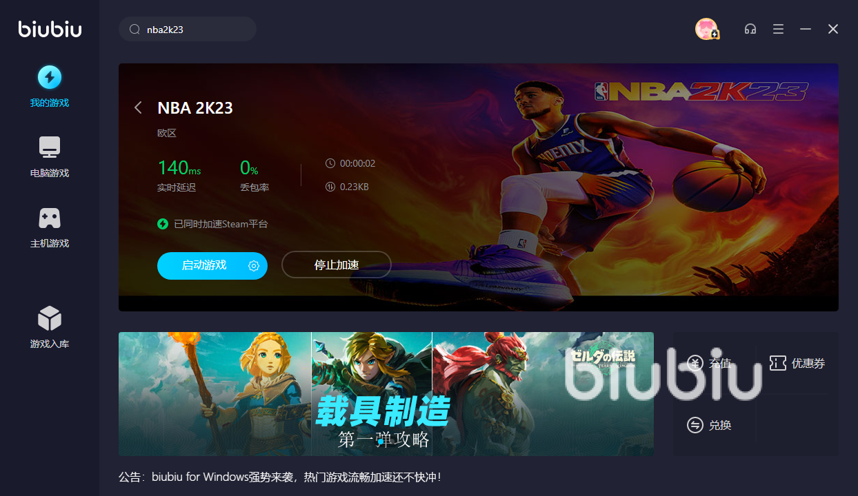 來源: 極光 作者: 七柒叭 2023年07月20日 15:382k23是一款許多NBA的粉絲都在玩的籃球游戲,難度極高,由于是少有的NBA系列游戲,喜歡NBA的小伙伴們它也比較看重,到處詢問有關(guān)這個(gè)游戲卡頓的問題,想知道2k23突然掉幀卡頓怎么辦的問題怎么解決。針對(duì)眾多的玩家愿望,小編找到了一款適合使用的加速器biubiu,這是一款真正的加速器。
