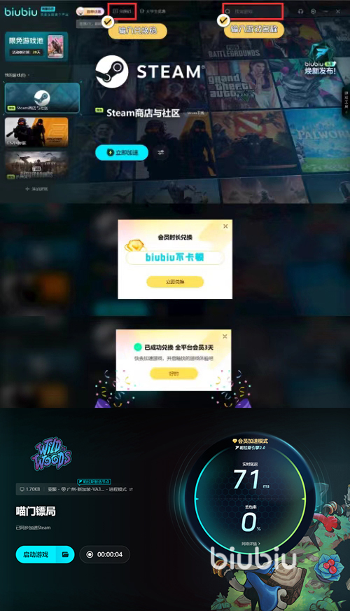以上就是喵門鏢局steam叫什么的相關(guān)攻略,biubiu作為一站式加速工具,它使用體驗好,加速效率高,性價比高,還有免費時長。它為海量游戲搭建了專區(qū),供玩家們線上實時交流,溝通每一關(guān)卡的難點和日常闖關(guān)突破的技巧,提升用戶社交體驗,營造出歡樂友愛的氛圍。