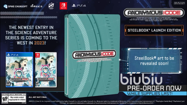 《匿名代碼》(ANONYMOUS;CODE,アノニマス?コード)是一款由MAGES.制作的文字冒險游戲,屬于科學ADV系列,于2022年7月28日發(fā)售。本作最早于2015年公開,原計劃登陸PS4、PSV平臺,后取消登陸PSV,加入Nintendo Switch平臺,原定在2017年冬季發(fā)售,五次延期后最終于2022年7月28日發(fā)售。同時這也是MAGES第一款登陸任天堂主機平臺的游戲。