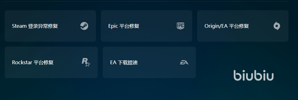 biubiu是通過商店優(yōu)化和提升網(wǎng)速兩個(gè)方面來(lái)解決網(wǎng)絡(luò)連接錯(cuò)誤的。在設(shè)置里面可以找到商店優(yōu)化,它不僅能優(yōu)化Epic,還可以優(yōu)化其他平臺(tái)商店,操作方法簡(jiǎn)單,也不需要等待很長(zhǎng)時(shí)間,優(yōu)化完畢后大家再去啟動(dòng)Epic就會(huì)發(fā)現(xiàn)自己登錄Epic的速度更快了,也沒有任何阻礙。