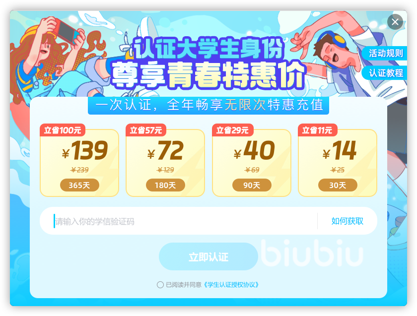如果你是學(xué)生黨的話,還可以通過認(rèn)證學(xué)信網(wǎng)身份來獲得充值優(yōu)惠,一次認(rèn)證全年都可以享受充值折扣,包年立省100元,只需139元,可謂相當(dāng)?shù)膭澦恪?/p>