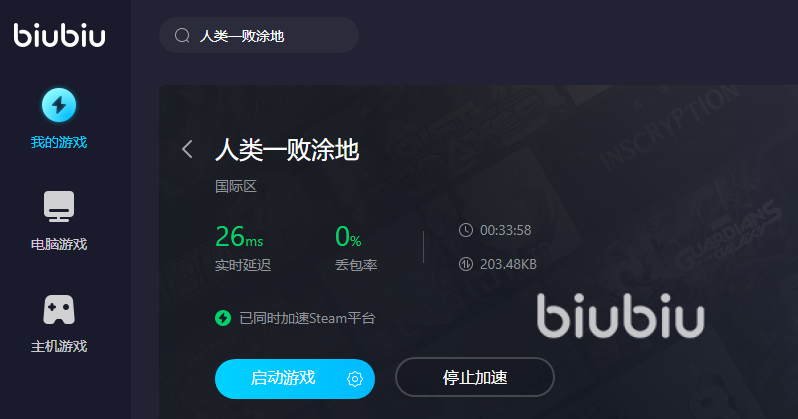 有的朋友電腦里存了很多游戲,人來一敗涂地也是其中之一。所以找游戲都很費勁了,如果加速過程很繁瑣的話,就會讓人不太想玩。還好biubiu可以一鍵開啟,使用方式非常簡單,在庫里迅速搜索到相關(guān)名字之后便可加速。加速完畢之后還能一鍵啟動該游戲,這樣你就不用來回地切換頁面去漫漫游戲里面尋找,這樣既能夠穩(wěn)定加速,還能助你迅速暢玩大型游戲。有效節(jié)約你的時間,讓你快快地玩完游戲之后,就能投入更多的時間在其他事情上面,還是很劃算的。