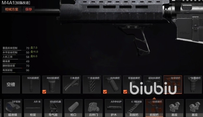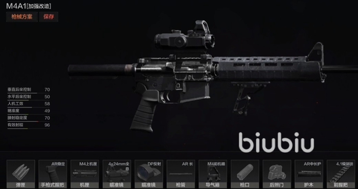 首先是槍墊,槍墊選擇卡賓槍托墊就可以了,彈匣隨意,握把選擇AR骨架握,機匣選擇M4上機匣,瞄準鏡選擇4x24mm全息。槍管選擇AR長槍管,導(dǎo)氣箍一定要選擇AR導(dǎo)氣箍。槍口選擇AR多口徑槍口,后照門不需要添加。護木選擇AR長護,前握把選擇4.1模塊鎖以及鋁制的握把。前照門和戰(zhàn)術(shù)配件不需要選擇,瞄準鏡中選擇PK-06加上DP反射配件。槍托選擇AR延長芯以及卡賓槍托。