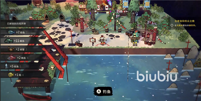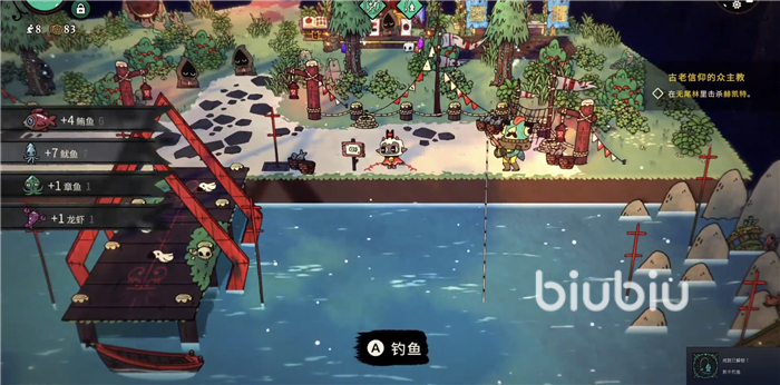 舉行好儀式以后,大家就可以再次前往朝圣者之路的河邊進(jìn)行釣魚(yú),按A鍵甩魚(yú)竿,當(dāng)成功釣到魚(yú)以后,再按A鍵把它釣上岸,龍蝦由于是比較特殊的魚(yú),所以可能需要個(gè)六次左右才能把它釣上來(lái)。