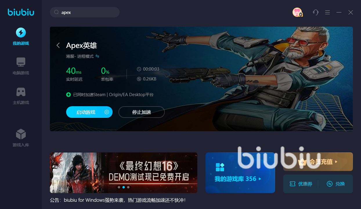 來源: 極光 作者: 果果 2023年06月27日 14:16射擊類逃殺游戲的精髓在這里體現(xiàn)的淋漓盡致,玩家需要在有限時間內(nèi)取得戰(zhàn)斗的勝利,通過發(fā)展自身以及強化武器裝備來打敗敵人是大家需要做的,對于apex英雄延遲怎么辦,很多朋友都是不太清楚,其實大家在體驗到海外服游戲時,這類現(xiàn)象還是蠻多的,主要原因還是距離太遠(yuǎn)了,數(shù)據(jù)容易出現(xiàn)丟包的現(xiàn)象,所以小編建議去使用biubiu加速器來穩(wěn)定自己的網(wǎng)絡(luò),若是對此感興趣,那么就接著往下看吧。
