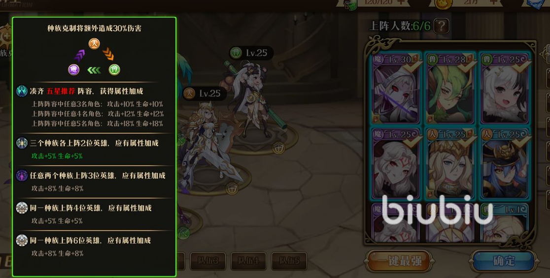 知道職業(yè)以后還要把英雄的種族分清楚,種族對(duì)于陣容的搭配也很重要。目前擁有的種族是人、魔、獸三種種族,當(dāng)同種族的英雄同時(shí)上場(chǎng)的話就會(huì)觸發(fā)種族力量,讓隊(duì)伍獲得特別的加成,提高戰(zhàn)斗屬性。