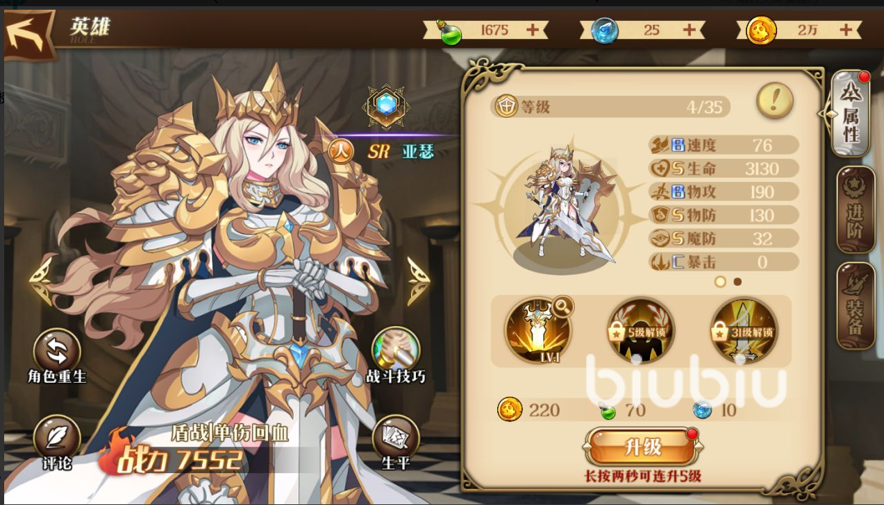提高英雄等級(jí)就更簡(jiǎn)單了,就是帶英雄去戰(zhàn)斗,讓他獲得更多的經(jīng)驗(yàn)。值得注意的是英雄的等級(jí)是有限制的,當(dāng)?shù)燃?jí)達(dá)到一定程度的時(shí)候,需要用突破寶石來(lái)突破登記顯示,解鎖更高的等級(jí)上限。并且英雄的等級(jí)上限也跟主動(dòng)技能、被動(dòng)技能效果有關(guān),等級(jí)高的英雄可以解鎖的技能更多。