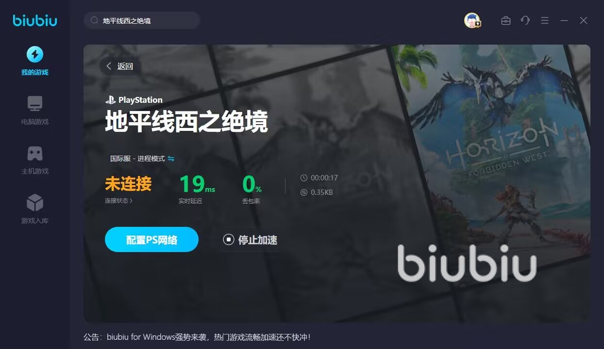 還有個不太好的消息,那就是本作暫時不上線PC端,主機(jī)玩家可以購買游戲包來體驗(yàn)。而biubiu好在不光支持PC的加速效果,對主機(jī)端也是提供一樣的服務(wù)的,鏈接各大網(wǎng)游做到即開即用。