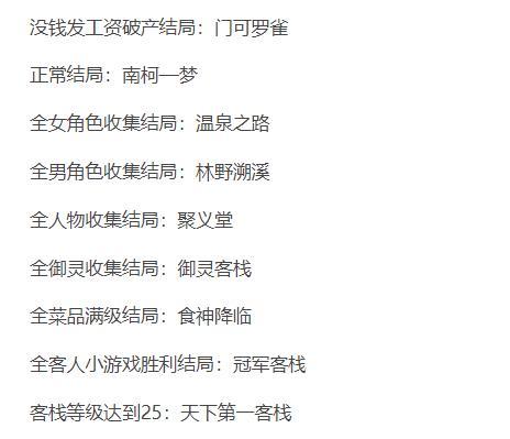而與客棧相關(guān)的就三個,一個就是窮到破產(chǎn),一個是正常想的,再一個就是客棧等級了,具體如下: