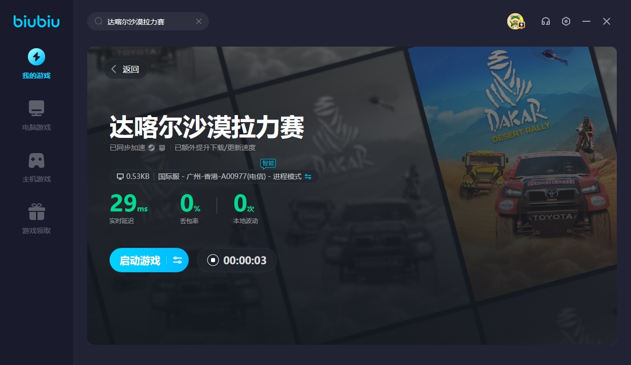 總之,以上就是小編為大家?guī)?lái)的達(dá)喀爾沙漠拉力賽閃退解決辦法分享,biubiu加速器為我們解決游戲閃退問(wèn)題提供了有力的幫助。通過(guò)它,我們可以享受更加穩(wěn)定、流暢的游戲體驗(yàn),讓游戲成為我們生活中的一大樂(lè)趣。如果你也飽受游戲閃退的困擾,不妨嘗試一下biubiu加速器,相信它會(huì)為你帶來(lái)意想不到的驚喜。
