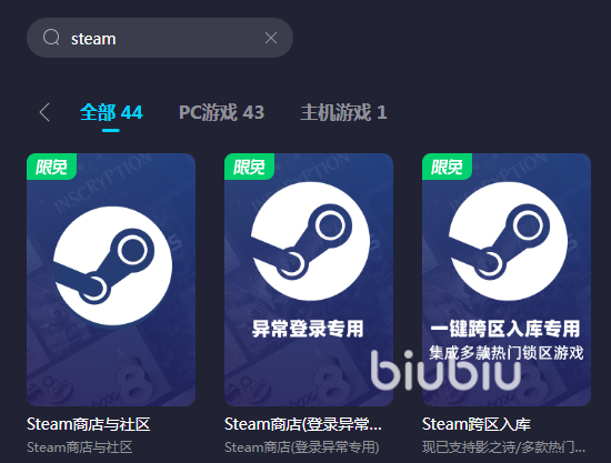 ????用biubiu來玩游戲是再好不過的,這個軟件能夠用在不同的游戲平臺上面,steam平臺就是其中之一。它支持的游戲多,覆蓋面也很廣,大家不僅能夠玩國服游戲,還可以玩日服、韓服等其他外服,只要是平臺里有的資源都能夠極速暢玩。有了它分分鐘訪問steam商店,想買的游戲和想下載的游戲都能快速購買和下載,之后玩游戲就更方便更順利了。