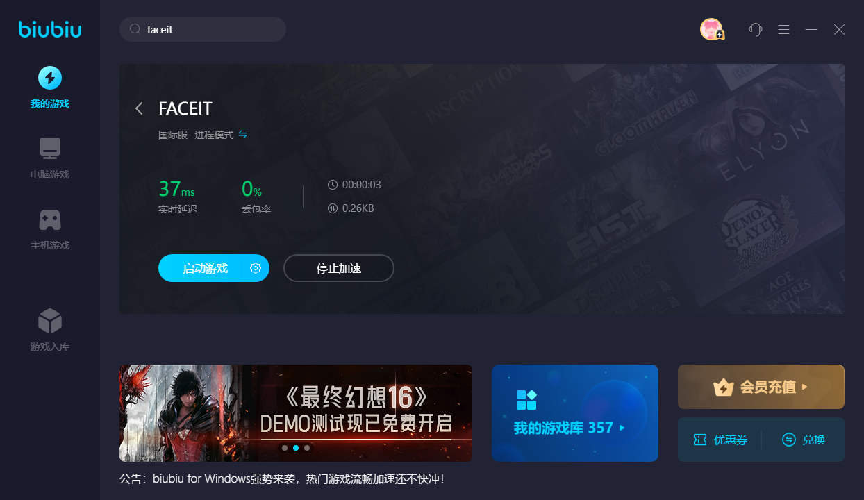 簡而言之,大家想要玩槍戰(zhàn)游戲的話使用faceit平臺肯定是一個好選擇,不僅可以得到一流的游戲環(huán)境,還可以在平臺上磨練自己的游戲技術(shù)。當(dāng)然咱們在游戲前可不要忘記使用biubiu加速器來加速游戲哦,現(xiàn)在新用戶下載注冊biubiu還可以領(lǐng)取24小時的免費加速游戲時長,非常的劃算哦。