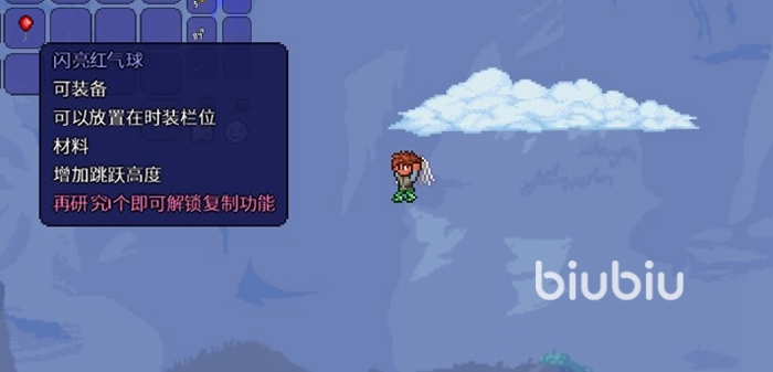 閃亮紅氣球是我們可以獲得的第一個(gè)氣球配飾,我們?cè)谄u的寶箱以及在空湖釣魚(yú)獲取的天空匣中都是有幾率可以獲得閃亮紅氣球的。閃亮紅氣球的效果是能夠增加我們的跳躍高度,默認(rèn)情況下我們的跳躍高度是6格,而在裝備了閃亮紅氣球配飾之后我們可以跳躍10.5格。而如果在裝備閃亮紅氣球的同時(shí)裝備了部分其他配飾,那么我們還可以獲得一些額外的效果。