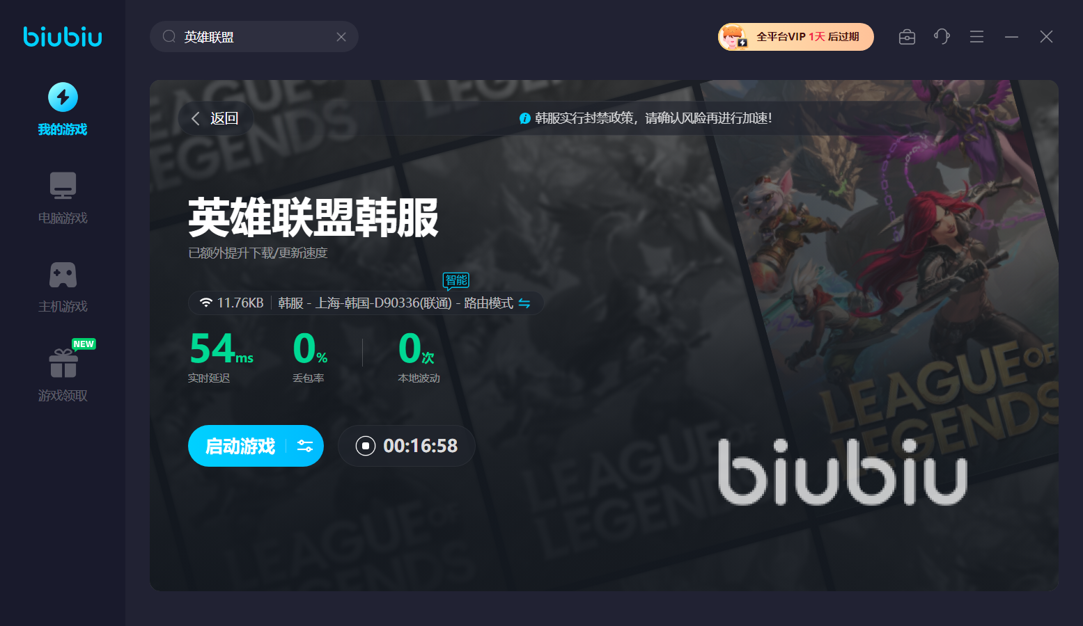 玩家只需要點(diǎn)擊上方的鏈接,將biubiu安裝好之后就能夠輸入游戲名稱,開始尋找相關(guān)選項(xiàng)。這里要注意的是,一定要在游戲名稱后面加上韓服,這樣才能夠找到。不要去國際服中查找,國際服里雖然也有很多海外服務(wù)器,但是其中并不包括韓服,找到準(zhǔn)確選項(xiàng)之后,點(diǎn)擊打開,就可以進(jìn)入到加速頁面。在此頁面中可以先看一下當(dāng)前延遲等網(wǎng)絡(luò)數(shù)據(jù),感覺合適之后直接就啟動游戲客戶端,在整個(gè)運(yùn)行過程中,biubiu會利用自己的全球?qū)>€技術(shù),保證在海外服務(wù)也有低延遲。一旦出現(xiàn)波動情況,還會隨時(shí)調(diào)整連接的節(jié)點(diǎn),大家就不用擔(dān)心競技過程中出現(xiàn)卡頓、閃退等問題了,只要保證加速頁面開啟,就可以源源不斷地獲得優(yōu)質(zhì)加速效果。