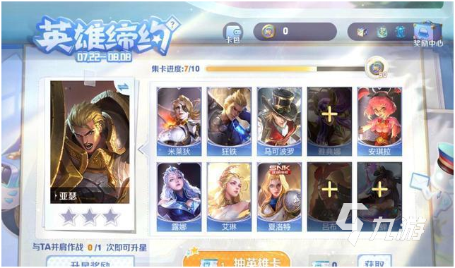 而獲取方面,首先玩家要登陸游戲。點(diǎn)擊屏幕右側(cè)的【活動(dòng)】圖標(biāo),進(jìn)入【英雄締約】活動(dòng),完成相應(yīng)的任務(wù)獲得代幣,然后點(diǎn)擊獎(jiǎng)勵(lì)中心,就可以進(jìn)行皮膚的兌換了。可以看到兌換列表還是有很多皮膚的,包括蒙恬的【蔚藍(lán)守將】。