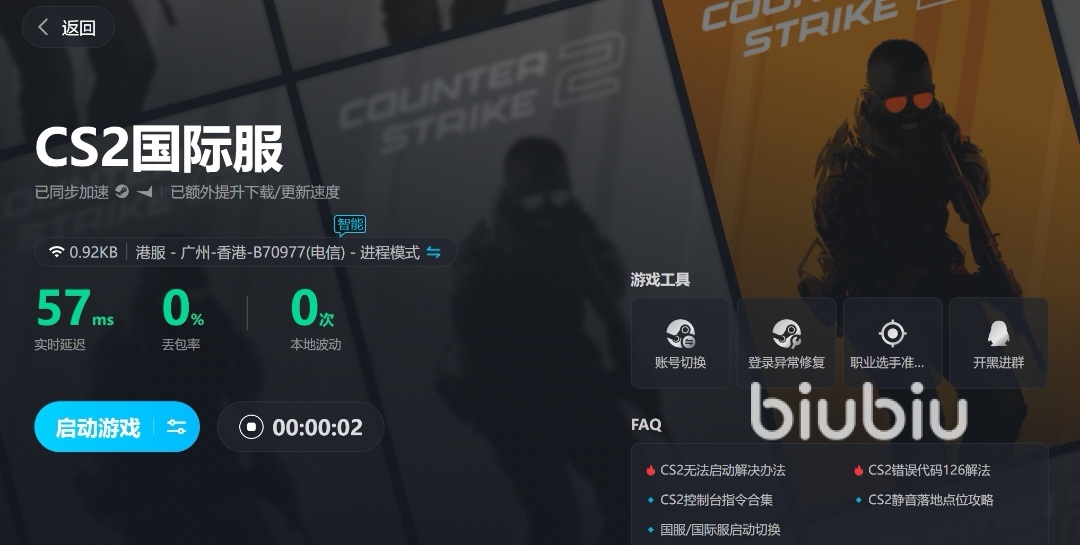 來源: 極光 作者: 阿堯 2024年02月23日 15:05游戲是以“CS”為原型的作品,背景所設(shè)置的地圖十分廣闊,玩家可以體驗到激烈的戰(zhàn)斗,在CSGO閃退怎么解決中,小編會為大家分享一下解決CSGO2閃退問題的方法,那便是下載biubiu加速器,因為導(dǎo)致游戲出現(xiàn)閃退卡頓等問題,大部分都是網(wǎng)絡(luò)或者服務(wù)器的原因,而這款加速器則可以一次性解決這些問題哦!