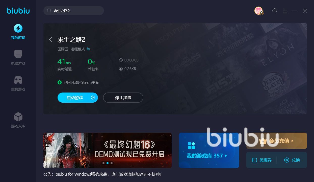 來源: 極光 作者: Mo 2023年07月31日 15:09求生之路2幀數(shù)高但是卡頓怎辦?同樣是一款可以多人聯(lián)機(jī)的射擊類型游戲,你將跟你的同伴一起挑戰(zhàn)各種難度不同的關(guān)卡,當(dāng)游戲出現(xiàn)卡頓等系列情況,可定是需要大家使用加速器來緩解不穩(wěn)定的網(wǎng)絡(luò)情況,眾多加速器中,效果顯著,口碑好的那非biubiu加速器莫屬了,有需要的話跟著一起來看看吧。
