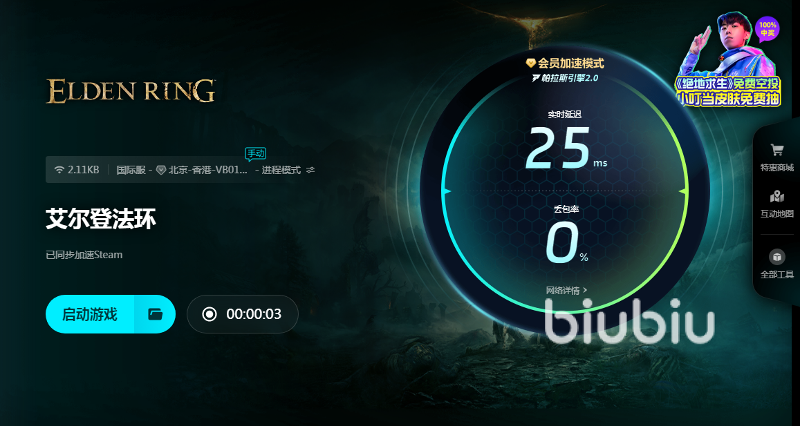 艾爾登法環(huán)大多數(shù)內(nèi)容都是單機(jī)玩法,也就是不會(huì)產(chǎn)生太多的互動(dòng)和數(shù)據(jù)交換,所以單人體驗(yàn)是無(wú)需加速器進(jìn)行優(yōu)化的。但是在下載安裝時(shí)候是有相應(yīng)需求的,在下載游戲客戶端時(shí),需要對(duì)相應(yīng)游戲平臺(tái)進(jìn)行加速,這樣可以更好完成下載更新任務(wù)。除此之外,這款游戲還能進(jìn)行聯(lián)機(jī),如果選擇進(jìn)行聯(lián)機(jī)操作,那么加速器是很有必要的優(yōu)化工具。因?yàn)橹挥性趦?yōu)化之后,才可以更好地連接服務(wù)器,提供穩(wěn)定連接效果。無(wú)論想要進(jìn)行哪種操作,最佳加速器選擇依然是biubiu。這款加速器工具性能優(yōu)異,價(jià)格優(yōu)惠,更是有著免費(fèi)試用福利提供給用戶?,F(xiàn)在福利可謂是走過(guò)路過(guò)絕對(duì)不容錯(cuò)過(guò)。新注冊(cè)賬號(hào)后立即能得到24小時(shí)加速時(shí)間,有了這樣福利真的不用再擔(dān)心加速效果問(wèn)題。