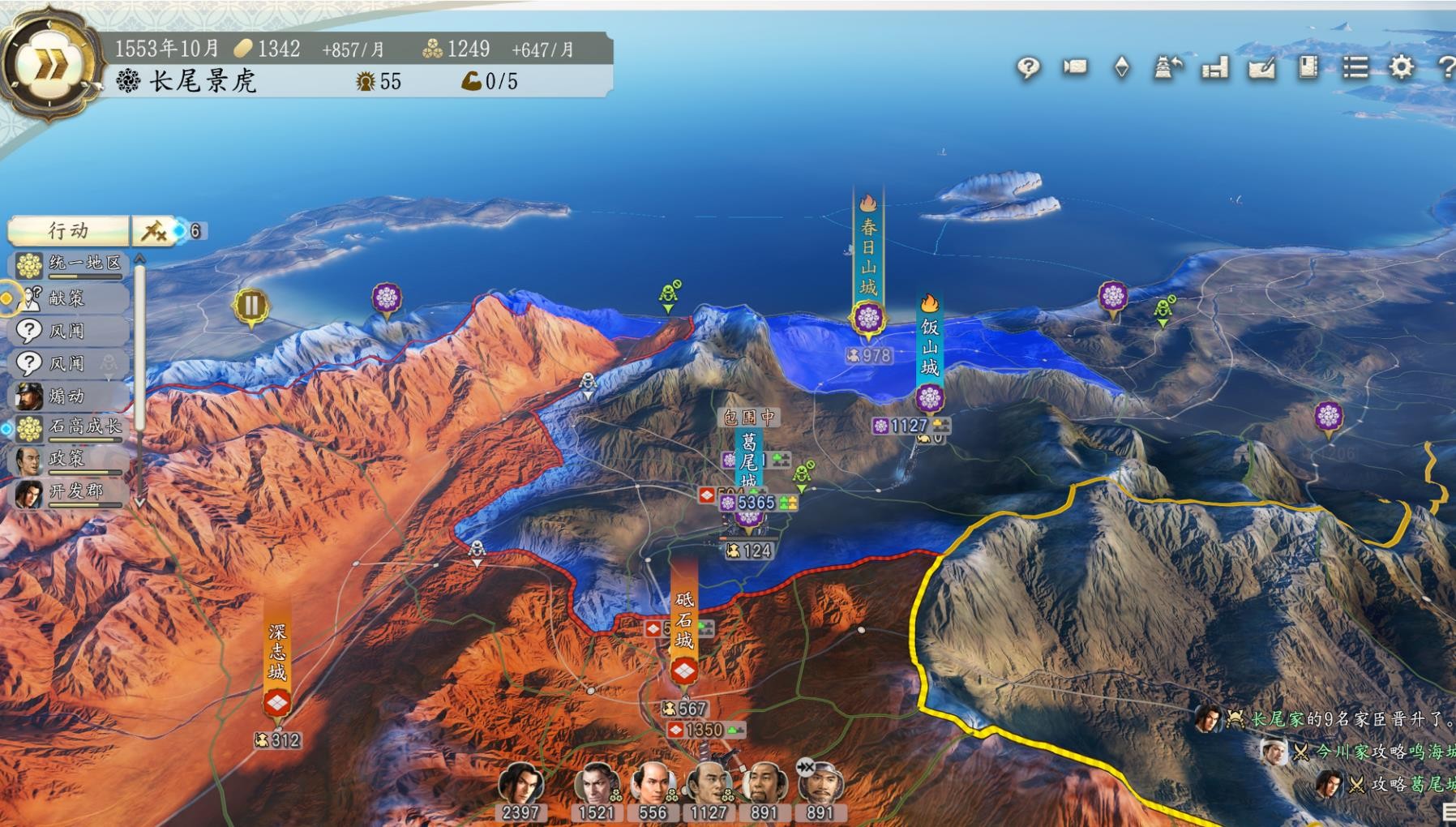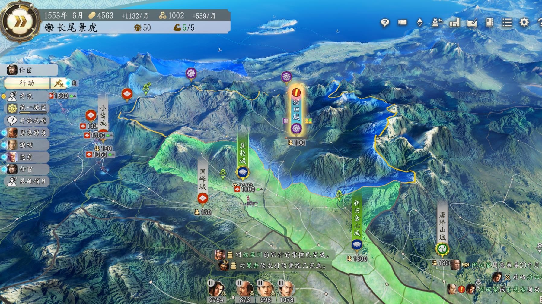 回到家之后將行知分配一下,剩余的武將集合,等到春日山恢復(fù)2000人之后就可以正式出發(fā)了。將葛尾拿下來(lái)之后根據(jù)自己的糧食狀況,如果不夠了那么直接下令撤退。