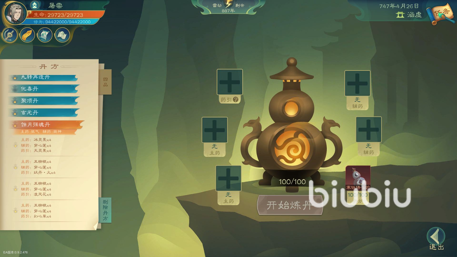 可藥田種植穿心蓮,煉制蝕月強(qiáng)魂丹,丹方為444,冰靈果,穿心蓮,幻心草。