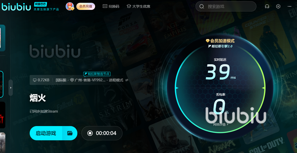 現(xiàn)在加入biubiu,新老用戶均可使用【biubiu不掉線】立即獲得3天的免費加速時長,暢享無憂游戲體驗。新用戶注冊登錄后,更有額外驚喜——直接贈送24小時的全平臺會員加速權限,兩者疊加使用,總計可享96小時的免費加速時長,讓你的《煙火》之旅暢通無阻。