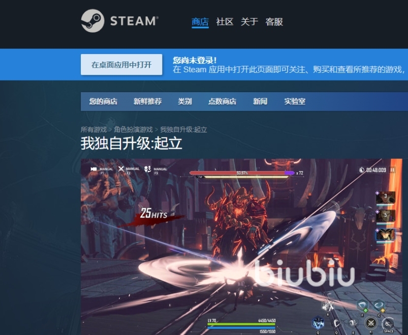 成功的第一步,就是從下載開始,此時我們一定要先加速,然后直接登錄Steam官網(wǎng),在龐大的商店海中找到我獨(dú)自升級起立,接著就把它加入購物車,成功購買后就是點(diǎn)擊下載了。