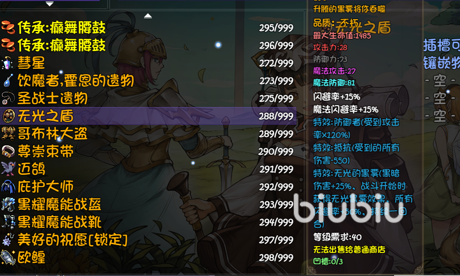 無光之盾應(yīng)該算是這個游戲最硬的裝備了,特效抵抗可以使角色收到的傷害-550,戰(zhàn)斗開始時,還給裝備角色一個潛行狀態(tài),增加40%閃避,可以給刺客使用,保證刺客的續(xù)航。