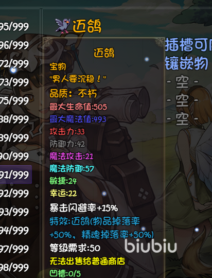 邁鴿,和上面的哥布林大盜以及歐皇一個樣子,加物品掉率以及金錢掉率,沒啥好說的,穿就完事了。