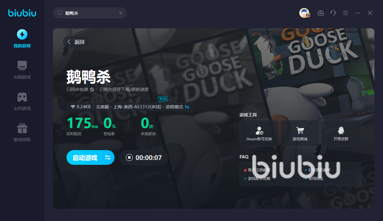 每個(gè)想玩鵝鴨殺的玩家,都得知道鵝鴨殺用哪個(gè)加速器。其實(shí)問題很容易解決,只需要開啟biubiu之后,就能協(xié)助你進(jìn)入鵝鴨殺的太空船宇宙里面。同時(shí)在好的網(wǎng)絡(luò)下輕松解決各種星際海盜,從此看到內(nèi)奸也能迅速鏟除,爭(zhēng)取成為人生贏家!
