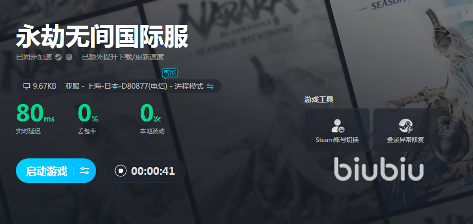 延遲不穩(wěn)定其實(shí)很好解決,只要下載biubiu使用它來(lái)加速就可以了。它現(xiàn)在有限時(shí)免費(fèi)體驗(yàn)活動(dòng),首先是注冊(cè)新用戶領(lǐng)取24小時(shí)免費(fèi)加速,其次就是使用兌換碼【biubiu不卡頓】領(lǐng)取三天免費(fèi)加速。如果是新用戶的話是可以同時(shí)參加兩個(gè)活動(dòng)的,而老用戶只能參加第二個(gè)活動(dòng)。
