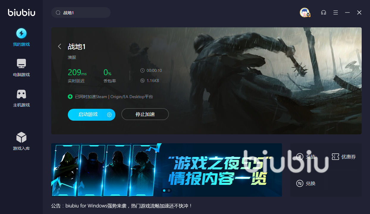 想要在槍林彈雨中以超低延遲快速做出各種反應(yīng),不用再擔心網(wǎng)絡(luò)問題,可以通過biubiu加速器打開游戲的方式來解決。因為在該加速軟件中,只需要簡單操作找到游戲名稱之后,點擊加速就能直接開啟客戶端,而現(xiàn)在已經(jīng)自動完成了整個加速流程,后續(xù)和正常運行完全一致??梢栽诩铀俳缑嬷忻黠@看到延遲有所降低,并且始終穩(wěn)定在較低水平。只要在運行過程中保證不關(guān)閉加速軟件或是窗口就能一直穩(wěn)定運行下去。