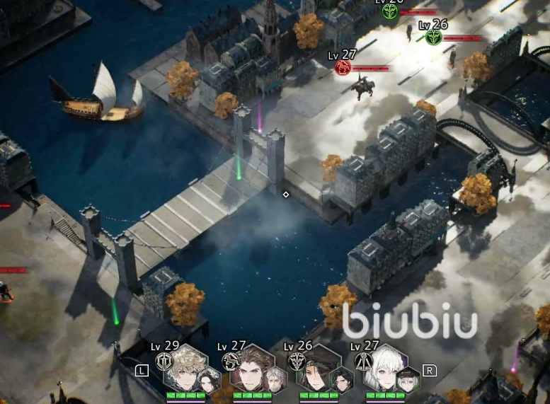 戰(zhàn)斗資料是這樣的,第一輪,卡特莉奴和安德利亞茲都會(huì)同時(shí)出手。在任務(wù)開(kāi)始后,盡可能的避開(kāi)無(wú)意義的爭(zhēng)斗,然后沿著地圖上的紅色線路來(lái)開(kāi)吊橋。當(dāng)我們抵達(dá)吊橋時(shí),我們的盟友們就會(huì)過(guò)橋并進(jìn)行戰(zhàn)斗。在下一個(gè)區(qū)域的拐角處,拾取寶箱,擊殺敵方,通關(guān)??ㄌ乩蚺谌蝿?wù)結(jié)束后,也加入了團(tuán)隊(duì)。