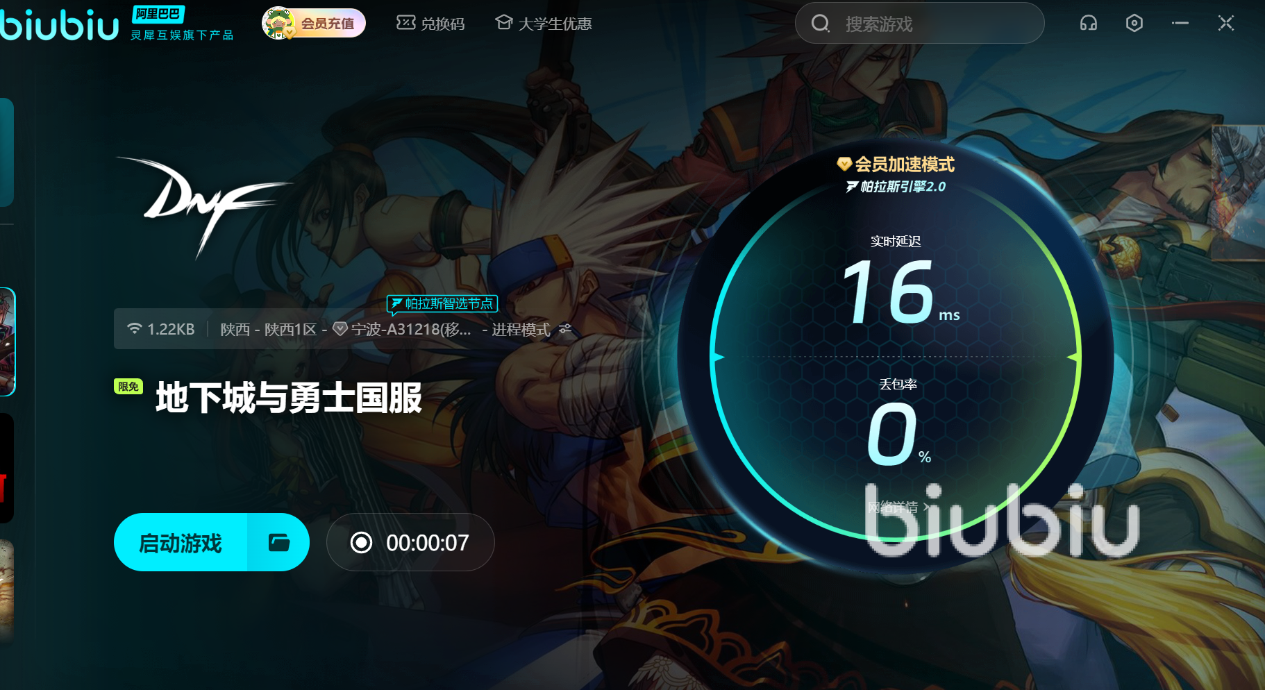 相信多數(shù)玩家都已經(jīng)了解到地下城與勇士掉線無法重連怎么辦的全部信息了,地下城游玩期間要是頻繁掉線還無法登陸的話,多半就是網(wǎng)絡(luò)引起的卡頓,這時(shí)候用biubiu加速器就很改善問題, 讓玩家們順利抵游玩地下城!