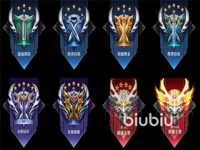 上圖就是游戲當(dāng)中的排位段位圖,游戲當(dāng)中的段位一共有8個(gè),其中最高的就是榮耀王者,需要大家達(dá)到王者50星,難度方面也是非常大的,小伙伴們可以多多練習(xí)英雄,畢竟現(xiàn)在新賽季的上分難度不高。