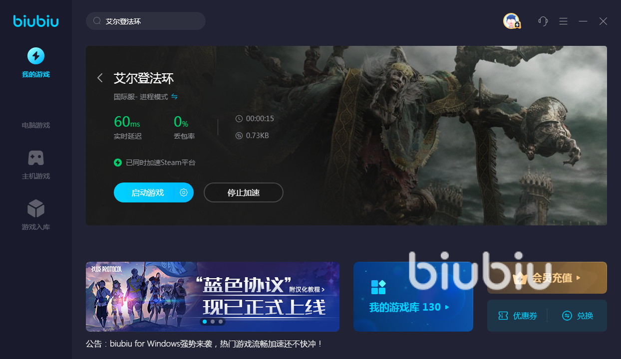 無論是想解決開門閃退問題,或者是運行過程中延遲過高以至于出現閃退、卡頓等情況,都可以利用biubiu加速器來解決。本來在運行艾爾登法環(huán)這樣超大型游戲時設備就很吃力,再加上一些場景下數據傳輸過高,很容易出現堵塞情況,但有了軟件加速之后,這些都能夠得到解決。會自動切換不同路徑和最優(yōu)節(jié)點,這樣就能始終處于低延遲狀態(tài)下,自然就不會再出現這些網絡問題。再加上這款游戲,目前只能登錄國際服體驗,所以對國服玩家來說也需要一款合適跨服工具,該軟件也能夠充當這樣的作用。