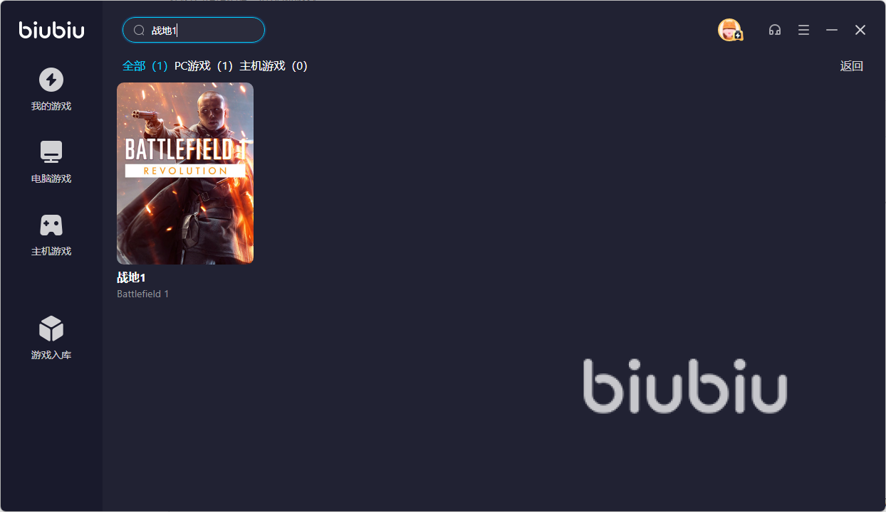之后在biubiu的游戲搜索界面搜索戰(zhàn)地1這款游戲,點(diǎn)擊添加,戰(zhàn)地1就會(huì)出現(xiàn)在我們的游戲加速界面了.