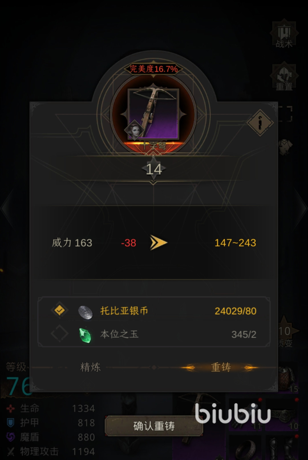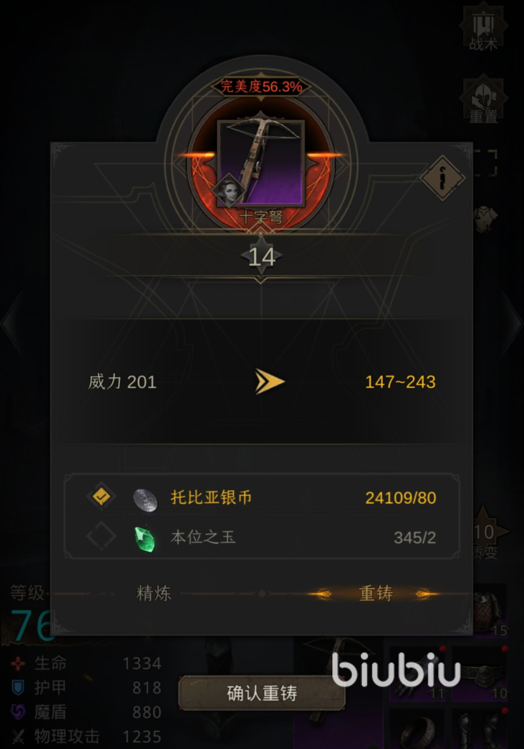 好了,以上就是地下城堡3怎么重鑄的詳細(xì)介紹,總的來說,重鑄在精煉的旁邊,每次重鑄都會刷新裝備完美度,可以選擇使用托比亞銀幣重鑄。