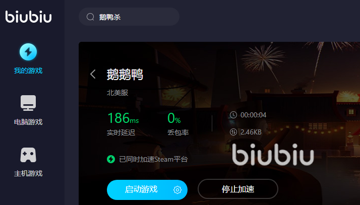 只不過鵝鴨殺雖然好玩,但是卻是一款海外游戲,很容易出現(xiàn)網(wǎng)絡(luò)延遲的問題。還好有biubiu的存在能夠讓你迅速的連接海外的網(wǎng)絡(luò)。并且不用自己費(fèi)力的去選擇IP地址以及更改網(wǎng)關(guān)什么的復(fù)雜操作,只需要輕輕的點(diǎn)擊相關(guān)游戲并且進(jìn)行加速即可。這樣你就能夠獲得低延遲并且網(wǎng)速飛快又穩(wěn)定的網(wǎng)絡(luò)環(huán)境,因?yàn)橛螒蚶锩娴墓?jié)奏非???,如果因?yàn)槟愕膭幼饕约靶畔l(fā)送延誤的話,就很容易讓鴨子成功的獲勝。此外,也會影響你的游戲體驗(yàn),畢竟你人物走動起來非常慢的話,玩起來也不夠過癮。