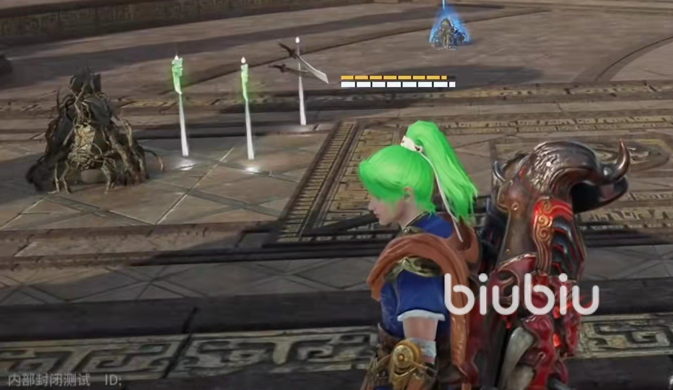 2、然后前往廣場按照剛才墻壁的壁畫來攻擊石像,攻擊后可以調整其方向,當方向一致后會出現(xiàn)寶箱,拾取后有一定概率獲得八級甲。