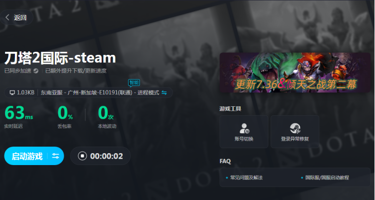 我們首先打開biubiu加速器,搜索刀塔2國際目前搜索結(jié)果只有一個,點擊選擇好后會自動開啟加速,之后等時間開始后點擊啟動游戲即可。這款軟件能極大程度地優(yōu)化網(wǎng)絡連接,減少游戲內(nèi)的延遲的同時提升界面幀率,讓我們在競技的時候再也不會擔心出現(xiàn)掉線的問題。