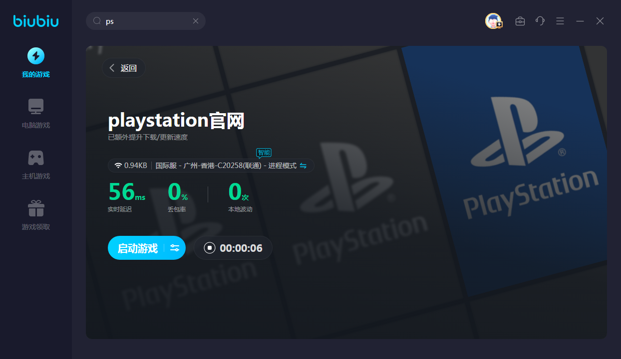 在這里進行加速的操作方法非常簡單,大家可以直接在搜索功能中輸入ps,找到相關(guān)選項,大多數(shù)玩家使用的都是商店里下載更新,目的是為了可以方便登錄,并在這里直接進行游戲下載。在此過程中利用自身全球?qū)>€技術(shù)加持,整個下載流程非常便捷和快速。更新時候也是如此,這樣對于一些體積比較大的游戲來說就會非常順利,可以快速完成下載安裝。如果僅憑自己網(wǎng)絡,很有可能在中途會出現(xiàn)斷斷續(xù)續(xù)情況,非常影響效率。另外大家也可以在游戲主頁面中直接選擇主機游戲,從中選擇ps,也可以達到同樣的效果。