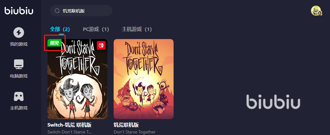 了解饑荒聯(lián)機版的同學也知道它不僅僅只是在PC端有登錄,還有部分同學可能還會在線下聚會時一起用Switch去玩,值得關(guān)注的是現(xiàn)在biubiu在面向Switch游戲時能免費加速,這種加速是無門檻設(shè)定,就算是沒開會員也能免費去用,不過它也是作為限時活動在一定時間內(nèi)去回饋新老用戶,從側(cè)面也能看出biubiu可搜索到同名游戲下的各個支持平臺,能搜索的到就代表支持加速。