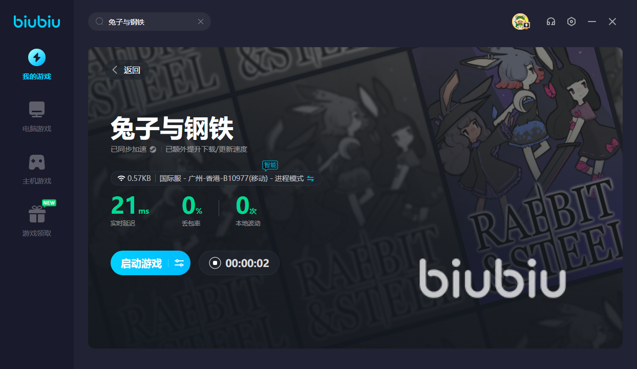 如果游戲延遲高的話,遇到一些需要精妙操作才能躲開的危機,就無法閃避了。有了biubiu后,便可解決高延遲問題,讓你按照自己的心意操縱人物,輕松躲開技能。由于兔子與鋼鐵是肉鴿游戲,玩到一半閃退,下次打開就要從一開始的地方玩起。使用加速器后,網(wǎng)絡(luò)會變得極其穩(wěn)定,讓你玩到最后一刻通關(guān)時也不會掉線。不過玩膩的話也可以選擇暫停,接著打開其他游戲即可繼續(xù)提速了,讓你告別無聊。
