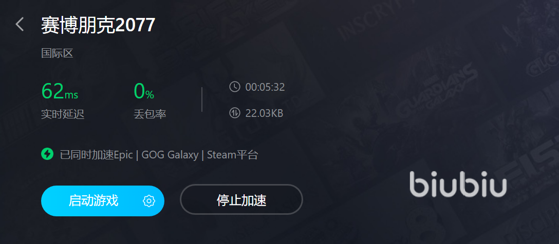 來源: 極光 作者: 昊 2023年04月14日 22:27賽博朋克2077這款游戲里面注入了非常多的未來科技,以第一人稱為視角進(jìn)行游戲。賽博朋克2077打開地圖卡頓什么原因?因?yàn)檫@款游戲占用的內(nèi)存還是比較大的,需要比較優(yōu)質(zhì)的網(wǎng)絡(luò)來提供支持。使用biubiu加速器就擁有非常強(qiáng)大的網(wǎng)絡(luò)加速功能,大家跟隨小編來對(duì)這款加速平臺(tái)了解一下吧。