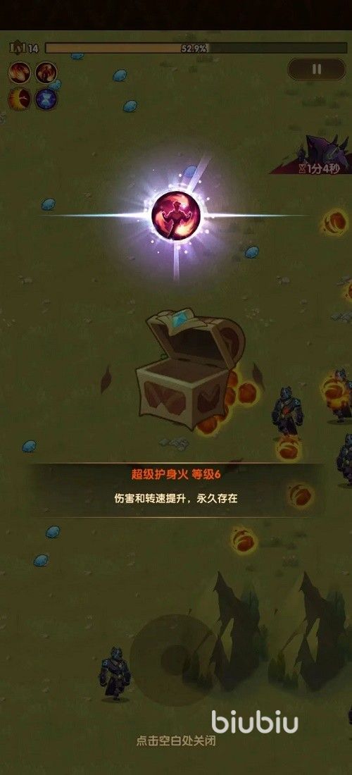 接下來簡單介紹一下活動的界面,在最上方那一個是經(jīng)驗(yàn)條,在地上鉆石代表經(jīng)驗(yàn),紫色的鉆石是最好的品質(zhì)。還有一個瓶子可以將遺漏的資源收集起來非常重要。接下來就是打boss了,當(dāng)擊敗boss后箱子可以開出6級。
