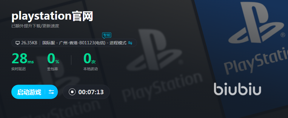 獲得免費(fèi)加速時(shí)長(zhǎng)以后,大家趕緊來(lái)試一試,搜索PlayStation即可看到對(duì)應(yīng)的程序,然后直接加速就可以了。它不需要特別選擇節(jié)點(diǎn),系統(tǒng)會(huì)自己匹配智能節(jié)點(diǎn),它的節(jié)點(diǎn)遍布全球,開啟智能模式以后自己會(huì)找到就近的流暢節(jié)點(diǎn)開始加速,大家只要稍作等待就能享受到絲滑的網(wǎng)速了。