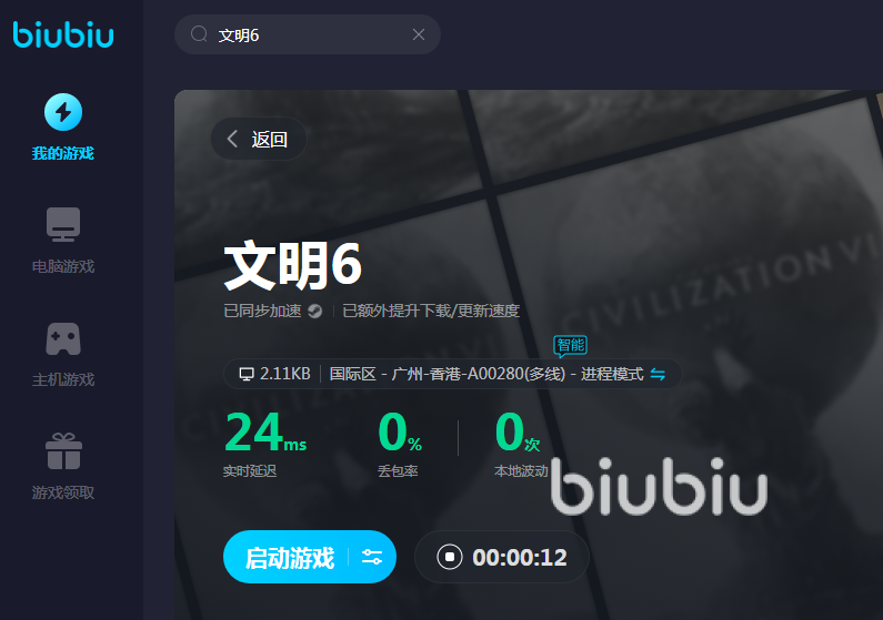 不得不說文明6的小細(xì)節(jié)設(shè)計得真的很到位,每個國家領(lǐng)袖的語言和這個國度的地理建筑都符合真實的特色,大家通過玩游戲就能感受不同的風(fēng)土人情。除了瘋狂基建自己國家以外,還有跟其他國家對戰(zhàn)的內(nèi)容部分,只有在自身網(wǎng)速良好的情況下大家才能專心致志地進(jìn)行戰(zhàn)斗,而biubiu加速器就能長時間給大家提供流暢的網(wǎng)速,哪怕大家玩上一整天它的速度都是一如既往地快,隨時回到頁面來查看流量情況都能發(fā)現(xiàn)網(wǎng)速的實時延遲特別低,用起來很安心。